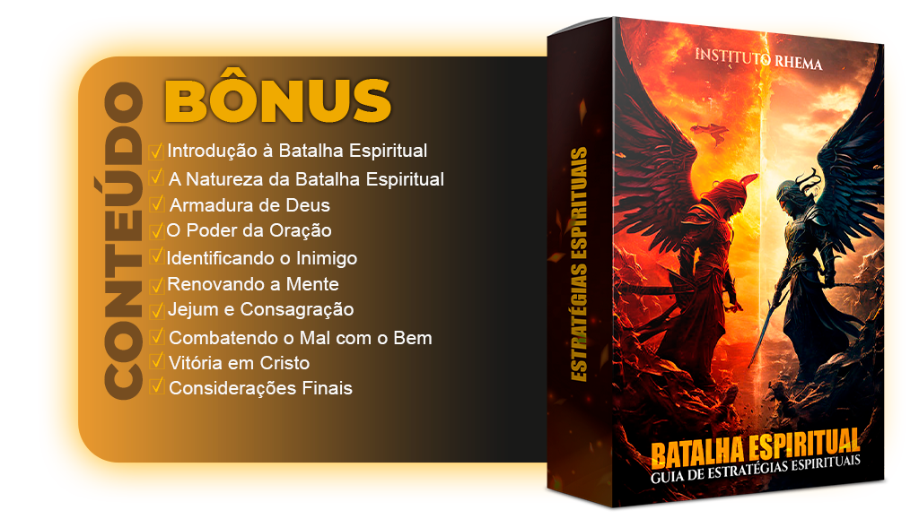 Você terá acesso a 12 ebooks (12 temas de estudo sobre Batalhas da mente) + Diversos Bônus Especiais.